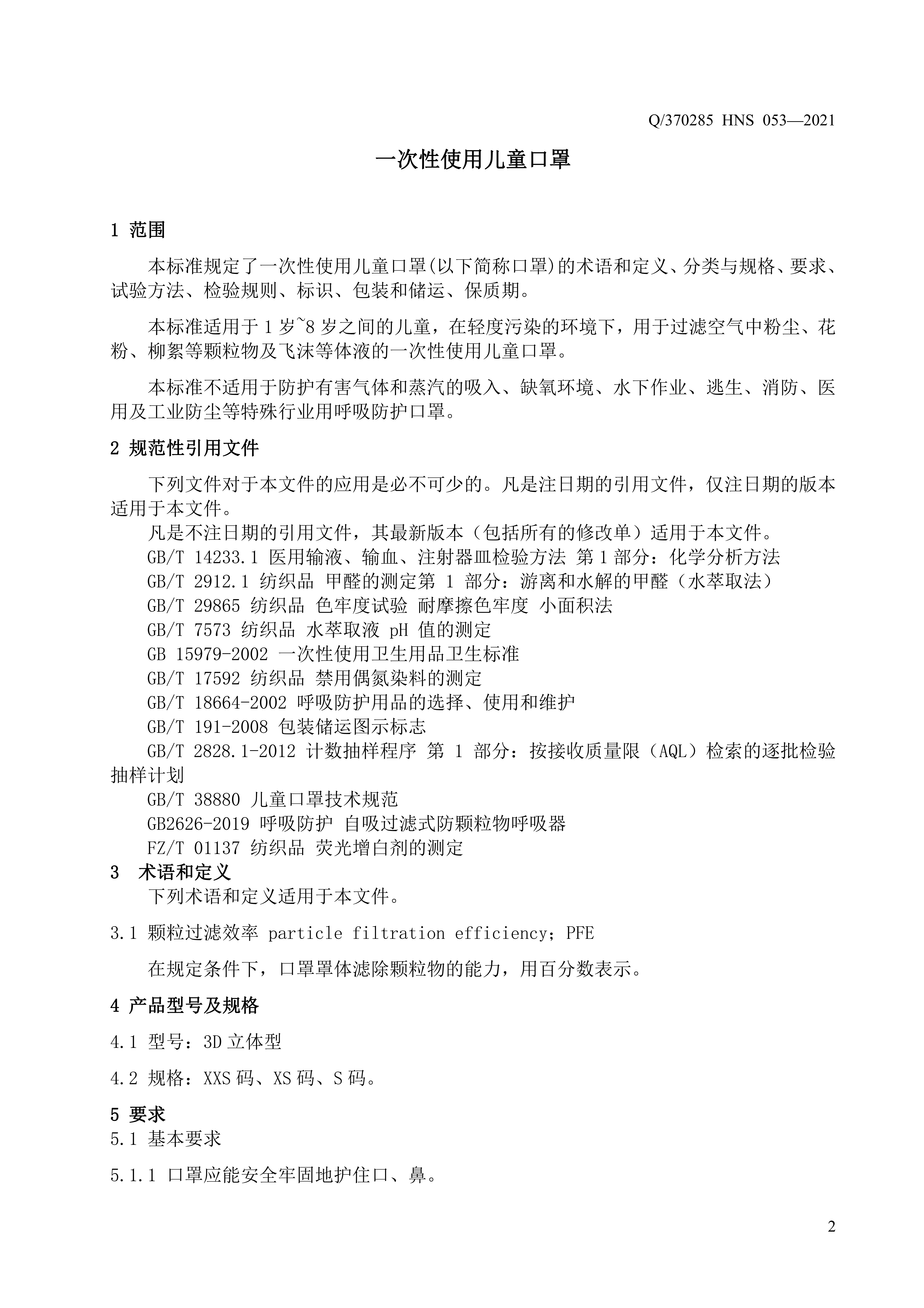 青島海諾生物工程有限公司企業(yè)標準 — 一次性使用兒童口罩